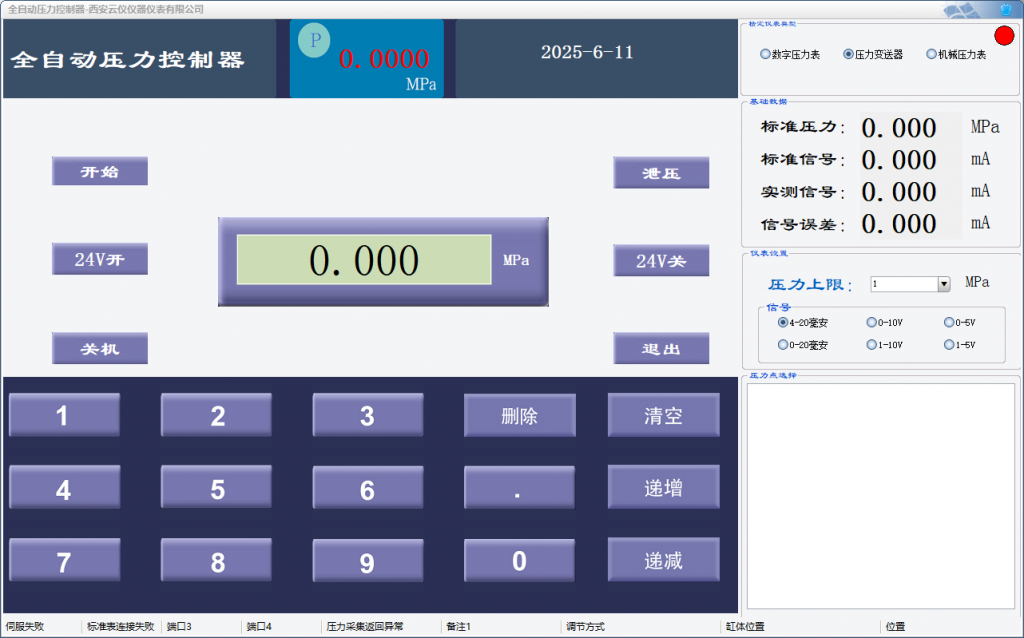 當前位置: 首頁 > 校準儀表>數字壓力校驗儀>智能壓力控制器